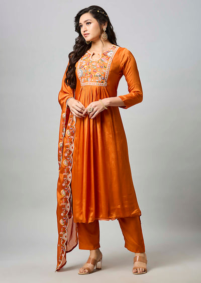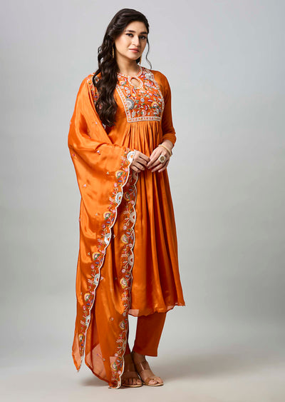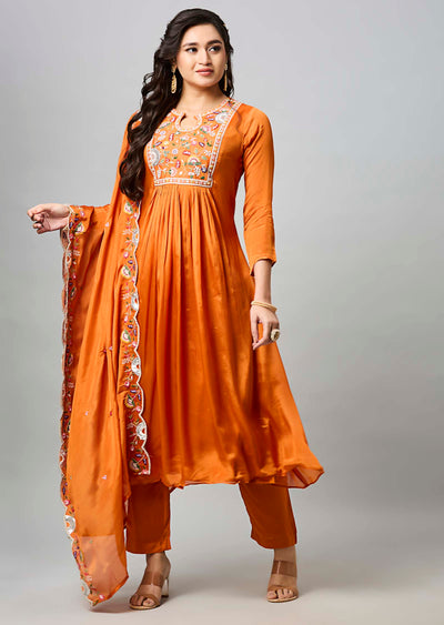 Orange Chinnon Anarkali Suit